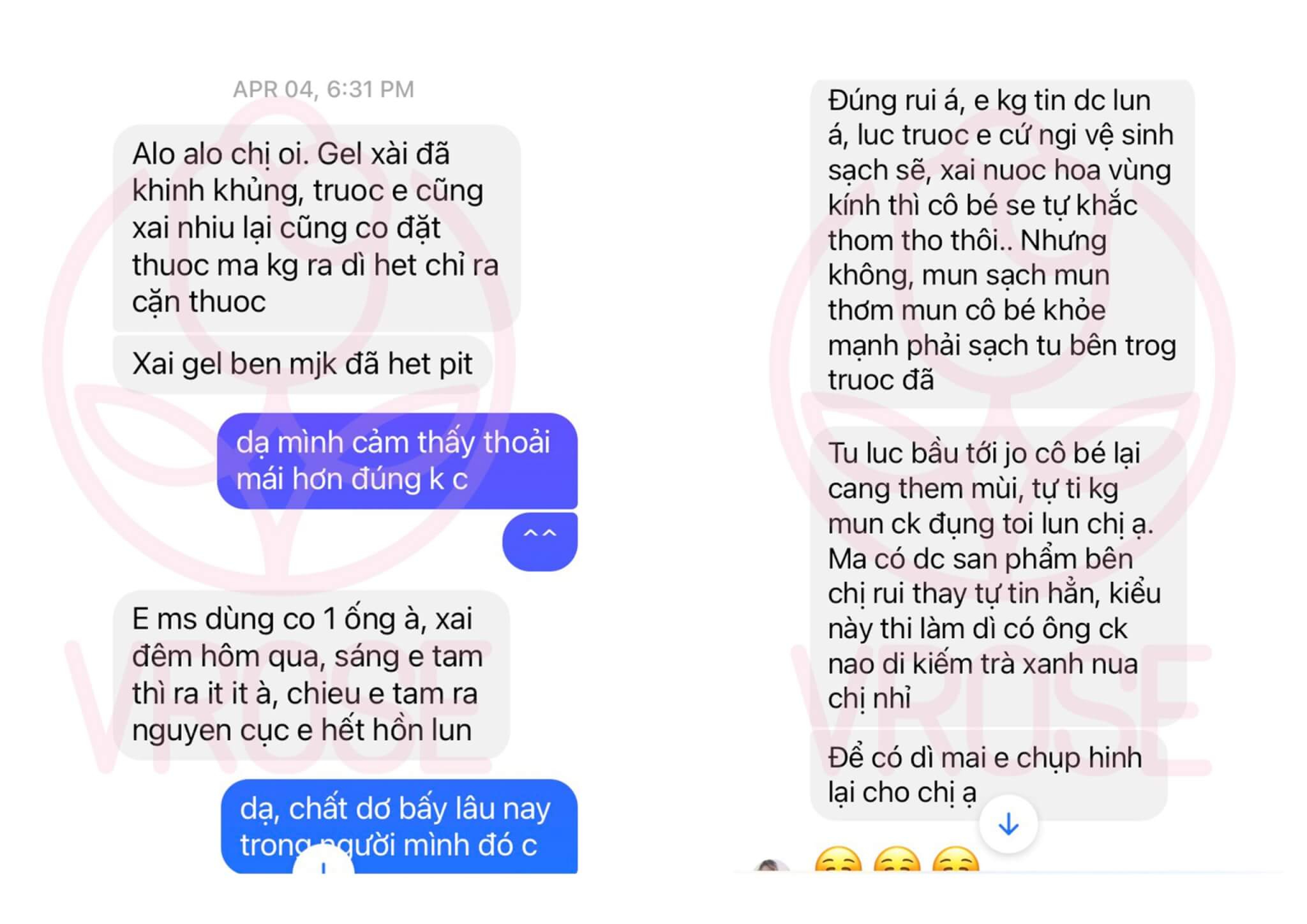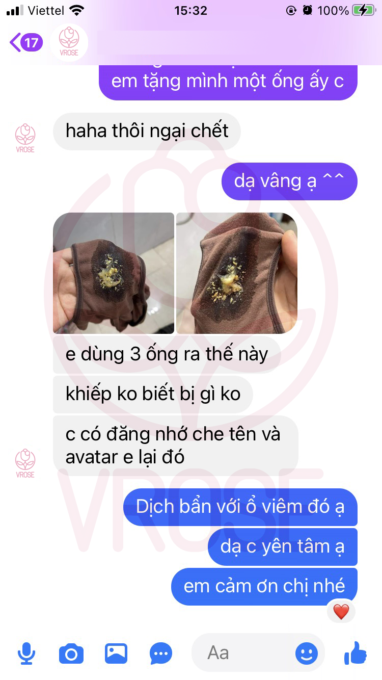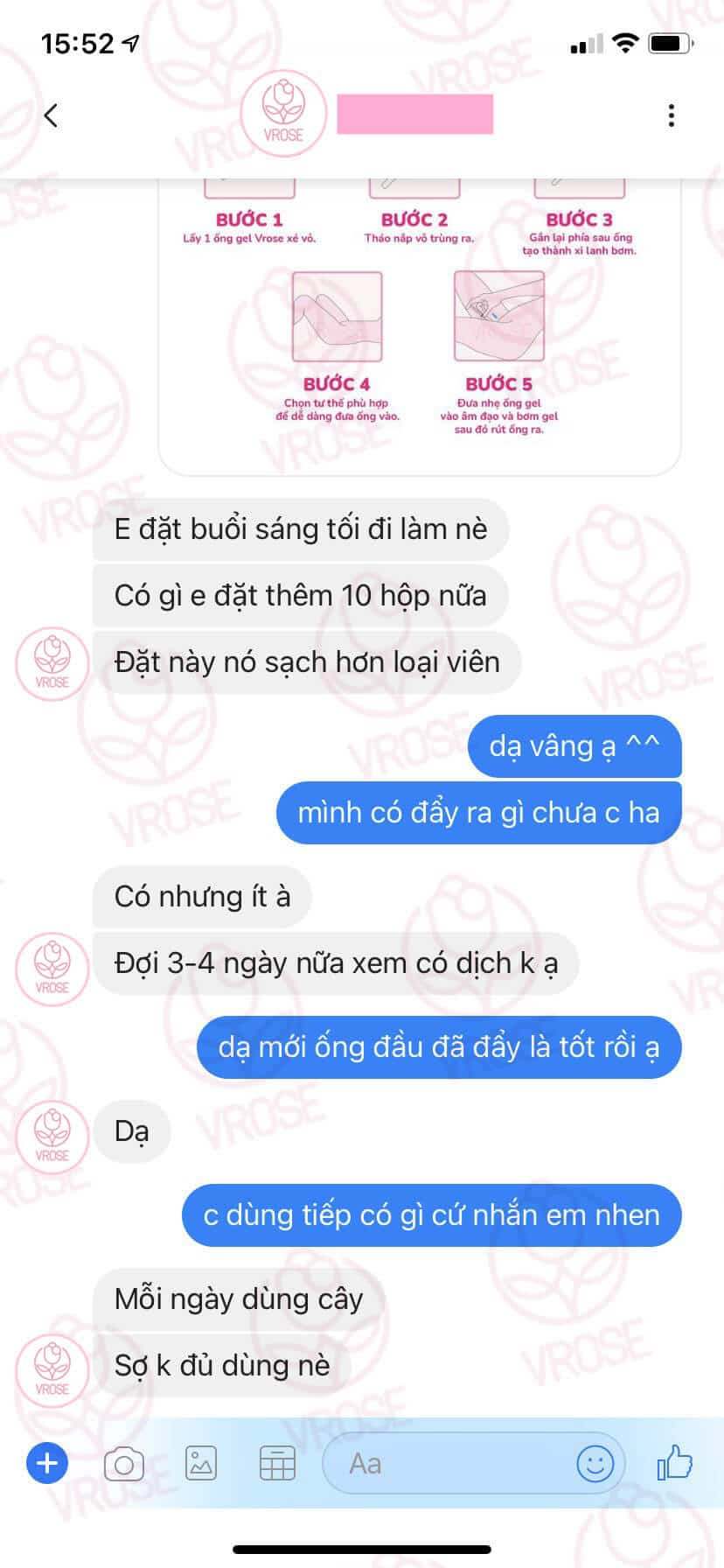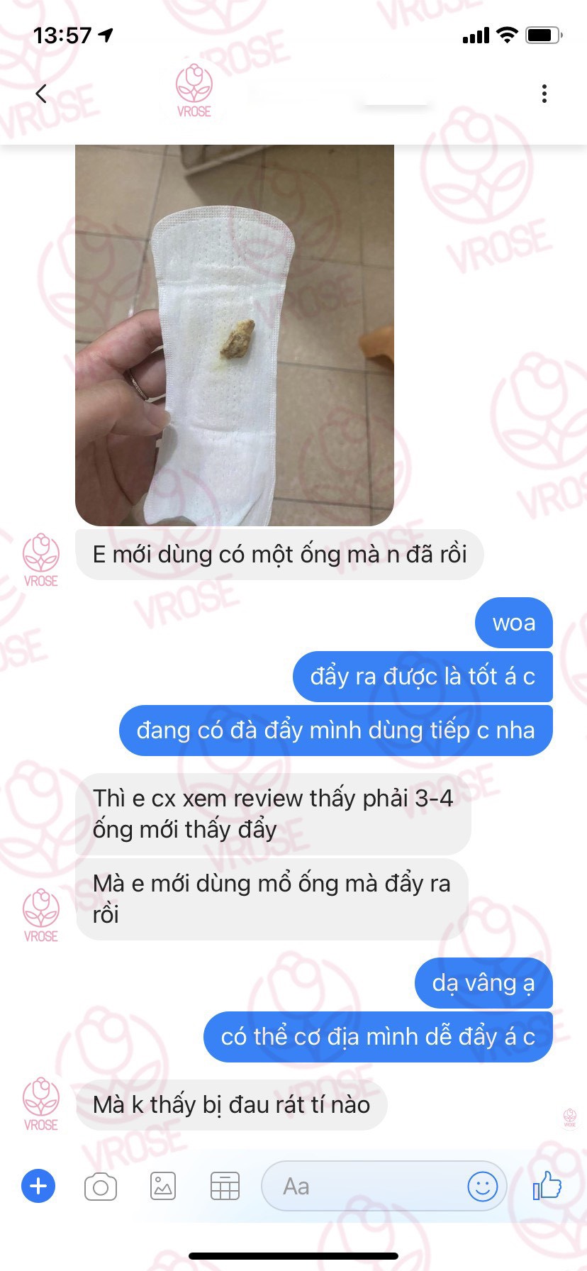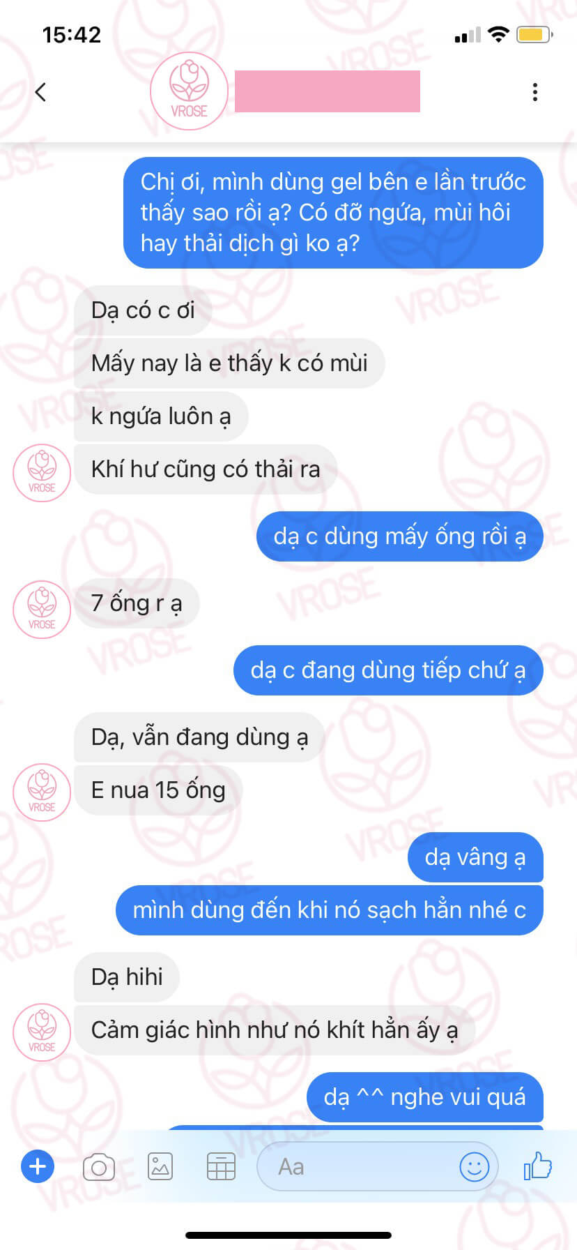 “Mình bị nấm cadida cũng lâu rồi cứ ngứa ngáy khó chịu lắm, mình cũng đã dùng nhiều loại thuốc đặt nhưng không hết. Nhưng sau khi dùng gel phụ khoa nano Vrose thì bớt ngứa hẳn. Mình dùng thấy chất bẩn ra rất nhiều, giờ hết ngứa những mình vẫn dùng thường xuyên để làm sạch”