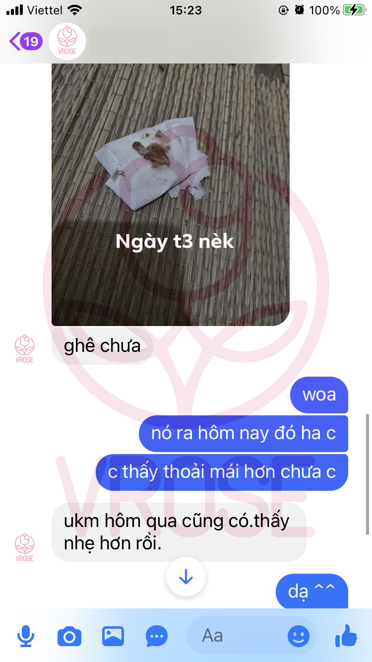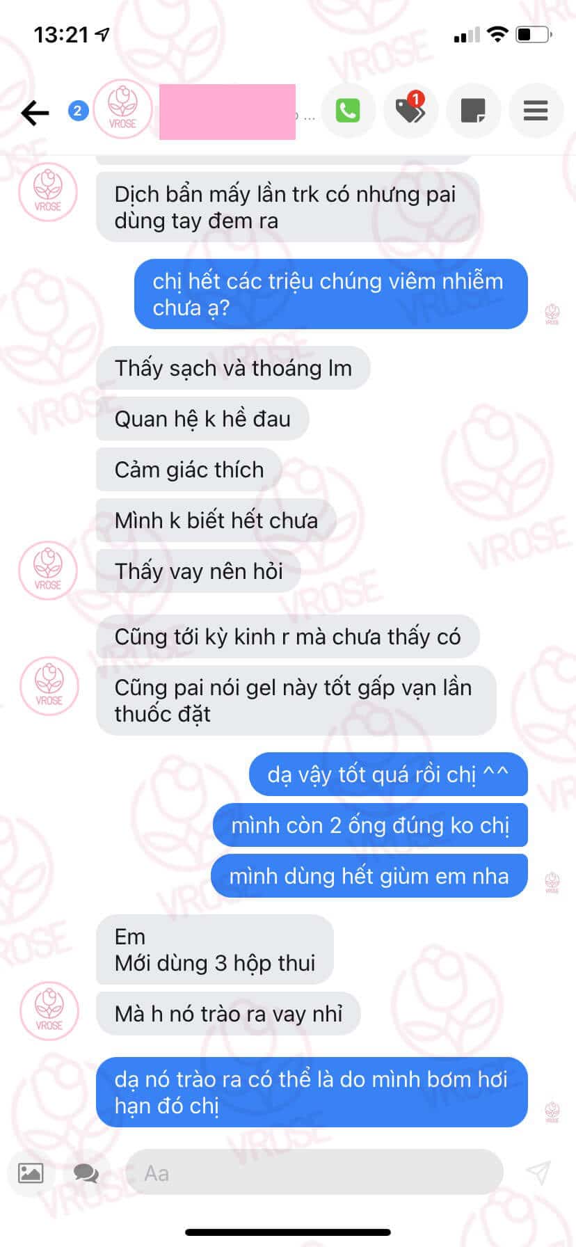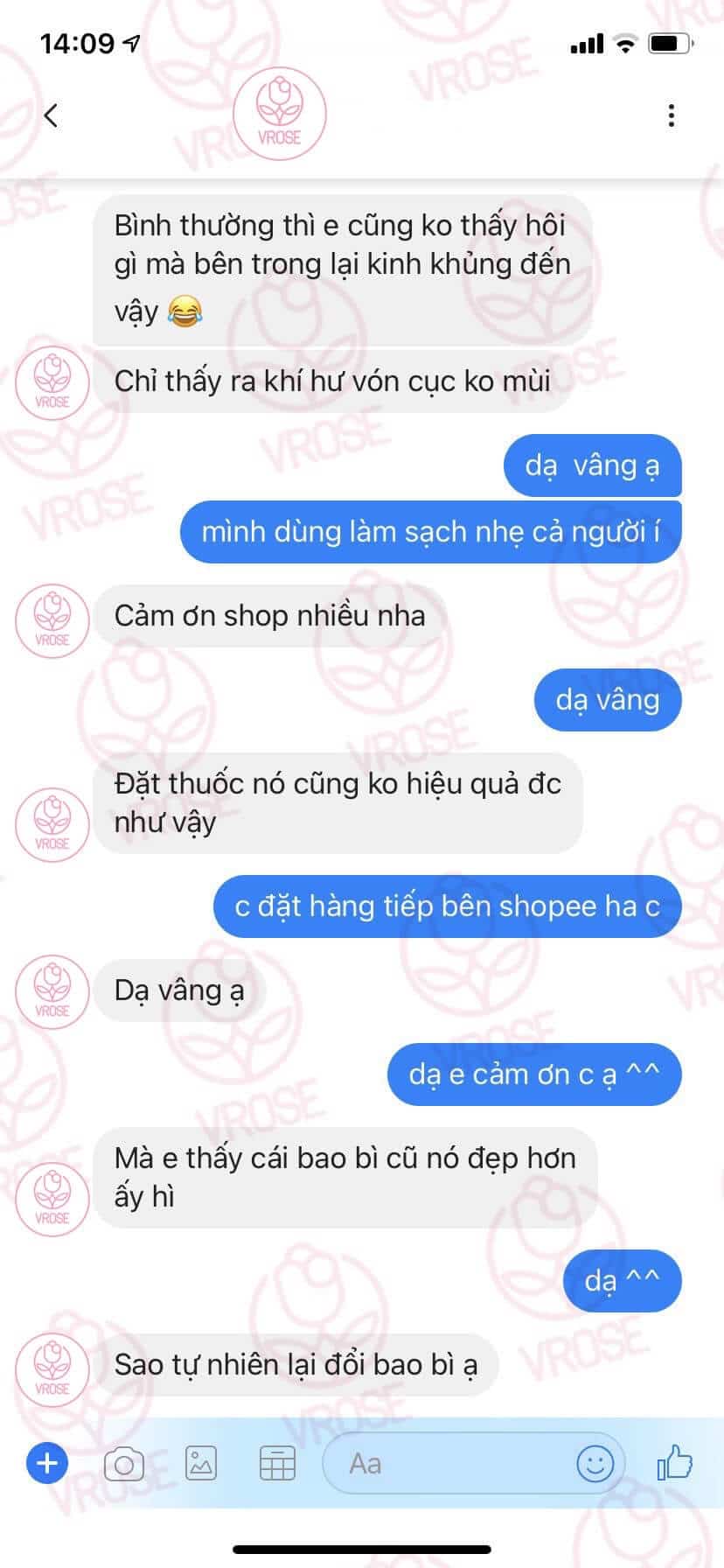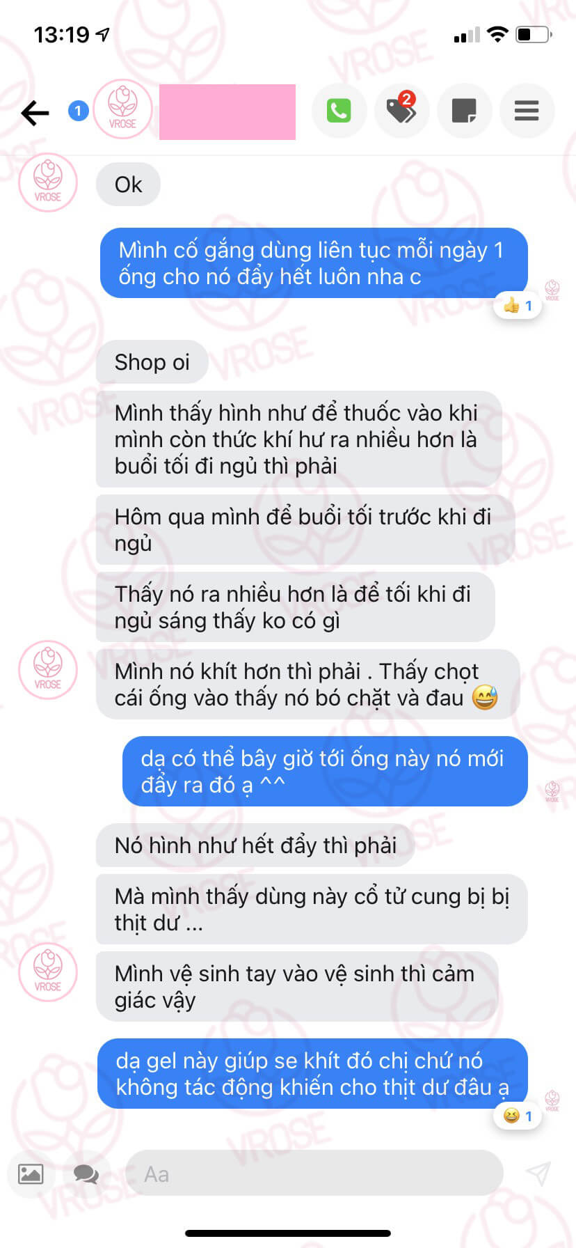 “Mình bị nấm cadida cũng lâu rồi cứ ngứa ngáy khó chịu lắm, mình cũng đã dùng nhiều loại thuốc đặt nhưng không hết. Nhưng sau khi dùng gel phụ khoa nano Vrose thì bớt ngứa hẳn. Mình dùng thấy chất bẩn ra rất nhiều, giờ hết ngứa những mình vẫn dùng thường xuyên để làm sạch”