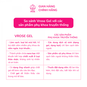 - Gel phụ khoa nano Vrose đã được các chuyên gia ngành dược nghiên cứu phát triển và tiến hành sản xuất với công nghệ độc quyền tại Đài Loan. Phân phối chính hãng tại Vrose. Một hộp gồm 3 ống (5g/1 ống)